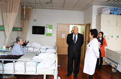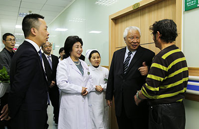 交流会结束后,李函宓院士非常好奇,他想知道在中大的诊疗方法和经验丰富的医师团队的诊疗下,患者们会收获怎样的效果和诊疗体验。踏入病房,李函宓院士仔细地询问患者自己想知道的答案,得到的满是患者对张教授等中大专家们的赞誉和感恩的话语,瞬间让李函宓院士钦佩不已。