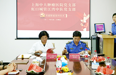 7.1建党节即将到来,中国共产党迎来了百岁诞辰。正值建党100周年之际,上海中大肿瘤医院党支部与虹口城管江湾中队共同携手,签订共建联建协议,签约仪式于6月24日下午在上海中大肿瘤医院行政楼举行。我院党支部书记、院领导以及相关职能科室负责人共同参加了签约仪式。